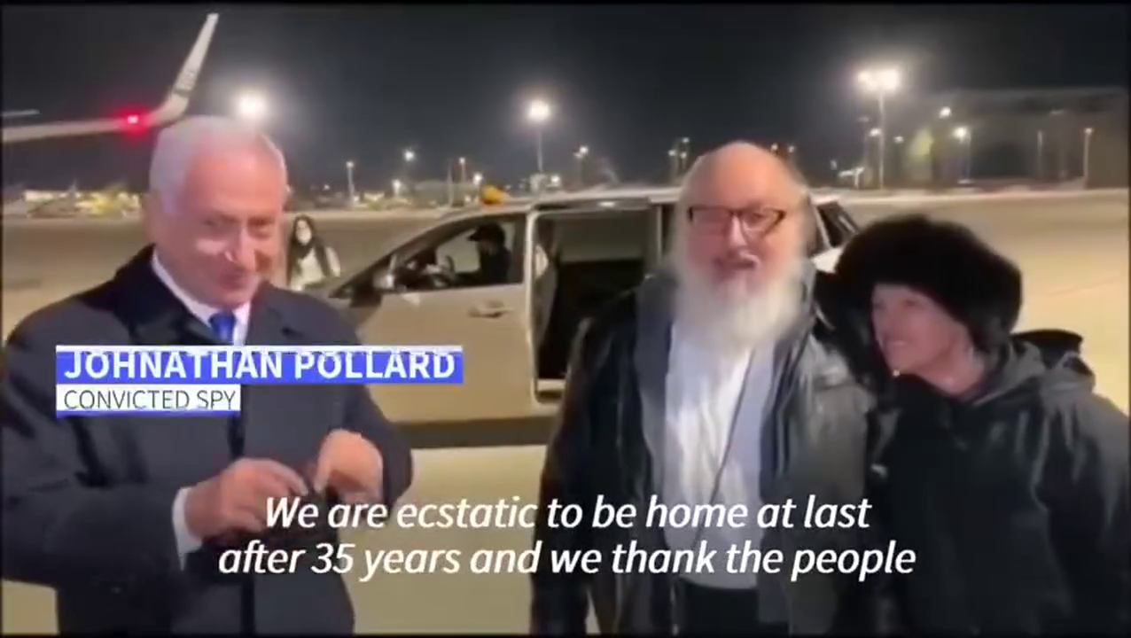 Israeli Spy Jon Pollard after being pardoned by Trump in 2021 and bowing to Bibi Netanyahu in a Hero's Welcome after getting of Shelly Adelson's Private Plane