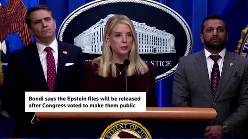US Justice Department will release Epstein files, Pam Bondi says and gives the Shpeel about "protecting the victims" and "following the law" as if she cares about either one