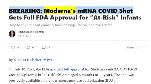 Trump's FDA grants Full Approval of Moderna SpikeVax, July 10, 2025 (Trump's 2nd Term)
