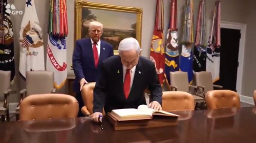 Trump thanking Netanyahu and the Israeli Army for their illegal attacks on Iran